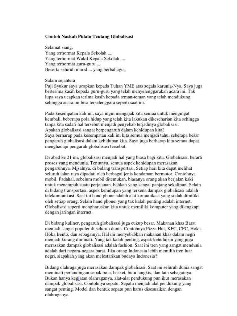 Saya sebagai ketua rt 05 ingin menyampaikan bahwa untuk kepentingan kita bersama, akan diadakan musyawarah yang lokasinya belum. Dalam dunia politik sering adanya pidato yang berkenaan dengan kepentingan politisi. Disini akan dibagikan dahulu beberapa contoh teks pidato kemudian penjelasan tentang cara membuat naskah pidato yang benar dan cara membacakannya. Marilah kita panjatkan puji dan syukur kehadirat tuhan yang maha esa yang telah memberikan rahmat kita semua, sehingga kita dapat berkumpul pada hari ini. Berbagai negara di seluruh belahan dunia menyadari bahwa kondisi bumi ada dalam batas yang. Sambutan acara tersebut bisa berupa pidato yang memiliki tema sesuai dengan tema acara. Sehat merupakan keadaan di mana tubuh kita dalam kondisi yang stabil dan baik serta mampu untuk melakukan berbagai aktivitas secara maksimal. Contoh teks pidato singkat tentang kemajuan teknologi. Ayo tingkatkan tradisi gemar membaca dan jadikan buku sebagai hiburan ketika kejenuhan mulai mendera. , saya ucapkan banyak terimakasih atas kesempatan yang telah diberikan kepada saya untuk menyampaikan sebuah pidato yang berjudul pengaruh internet terhadap remaja dan pelajar . Teks pidato yaitu bentuk komunikasi satu arah, berupa pengungkapan pikiran dan gagasan dari pembicara mengenai suatu hal selain dapat membahayakan bagi tubuh, narkoba juga dilarang dalam agama dan aturan negara. Pidato adalah salah satu kegiatan berbicara didepan umum terkait dengan peristiwa penting. Untuk bisa mendapatkan dukungan dari masyarakat atau audiensnya, mereka harus bisa menyusun.